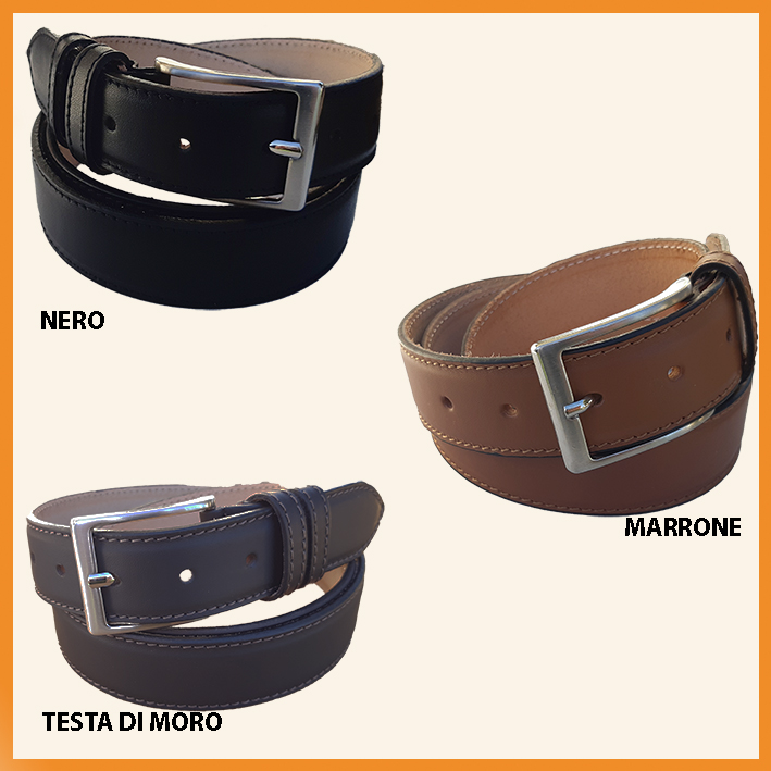 Cintura classica in Vitello, foderata in pelle con cucitura esterna. Tutti i modelli sono facilmente scorciabili. Altezza: 3,5 cm Lunghezza: 120 cm Colori disponibili: Nero - Testa di Moro - Cognac - Marrone - Blu Navy
