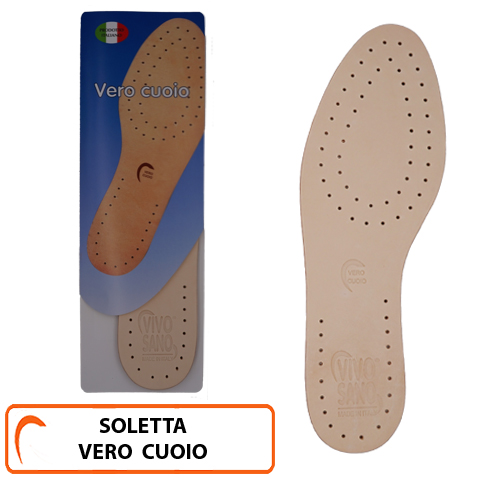 Solette in Vero Cuoio traspirante, le particolari forature permettono al piede una facile aerazione mantenendolo sempre asciutto e limitando sudorazione e cattivi odori.