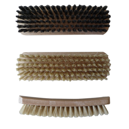 Spazzola grande in legno e setole chiare o nere per lucidare le scarpe.
