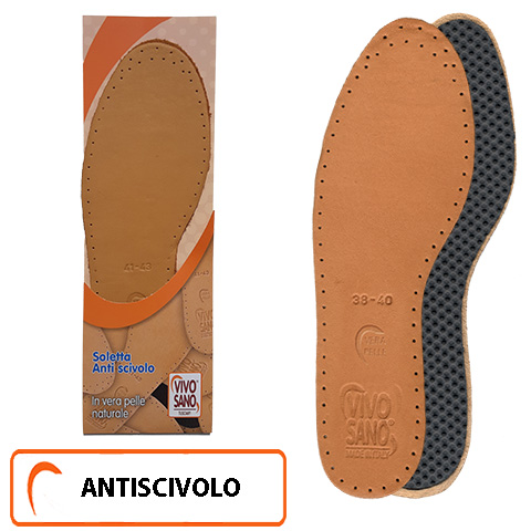 Soletta in Vera Pelle naturale e morbido lattice antiscivolo, sottile e morbida non ingombra all'interno della scarpa.