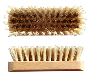 Spazzola in legno con setole e ottone, particolarmente indicata per pulire pelli in camoscio o nabuk.