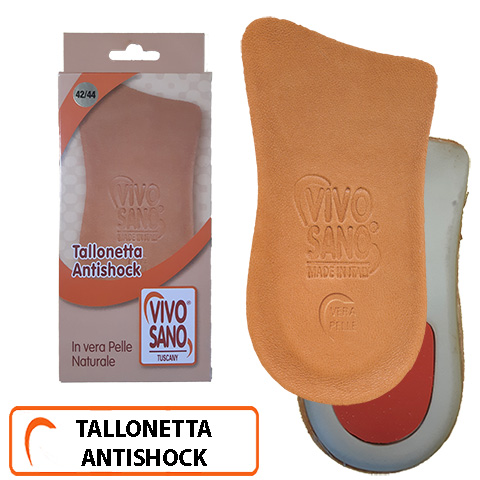 La tallonetta ANTISHOCK è realizzata in Vera Pelle Naturale e morbido Lattice e grazie all'inserto Shock Absorber (posto sotto il tallone) svolge un'azione di contenimento dei microtraumi, proteggendo l'apparato osteoarticolare e alleviando gonfori e sintomi di stanchezza.